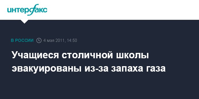 Москва. 4 мая. INTERFAX.RU - В Москве из-за запаха неизвестного газа эвакуированы учащиеся одной из школ, сообщил "Интерфаксу" источник в правоохранительных органах.