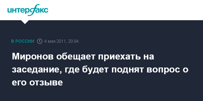 Миронов обещает приехать на заседание, где будет поднят вопрос о его отзыве