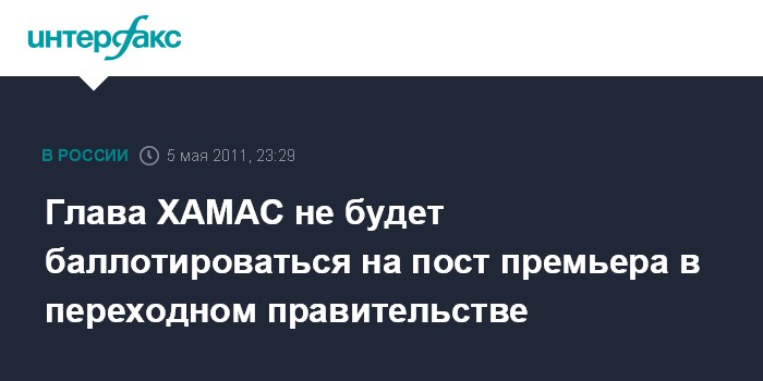 Иерусалим. 5 мая. ИНТЕРФАКС - Один из лидеров радикального палестинского движения ХАМАС в секторе Газа Исмаил Ханийя не намерен выдвигать кандидатуру на пост премьер-министра в переходном правительстве национального единства, сообщает агентство ЭФЭ.
