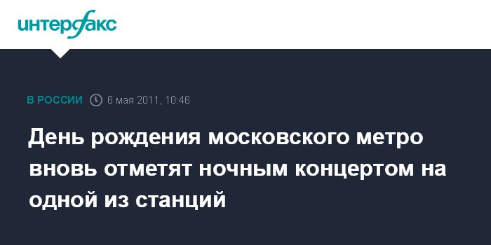 Москва. 6 мая. INTERFAX.RU - В рамках ежегодной акции "Ночь музеев" 14 мая на одной из станций столичного метрополитена состоится концерт классической музыки, приуроченный к 76-летию московской подземки.