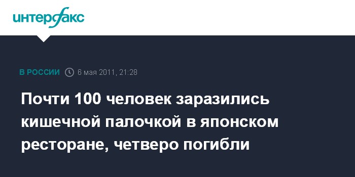 Почти 100 человек заразились кишечной палочкой в японском ресторане, четверо погибли