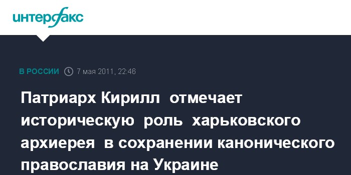 Патриарх Кирилл отмечает историческую роль харьковского архиерея в сохранении канонического православия на Украине