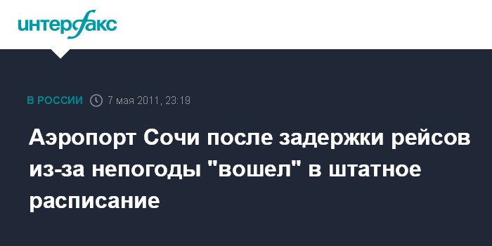 Аэропорт Сочи после задержки рейсов из-за непогоды "вошел" в штатное расписание