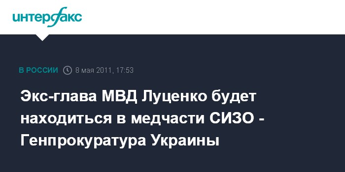 Киев. 8 мая. INTERFAX.RU - Бывший министр внутренних дел Украины Юрий Луценко, который объявил голодовку в следственном изоляторе, с его согласия будет находиться в медицинской части СИЗО для обеспечения круглосуточного медицинского контроля.