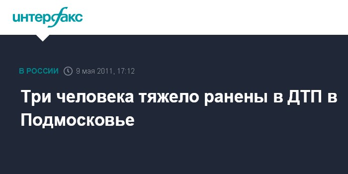 Москва. 9 мая. INTERFAX.RU - В Подольском районе Подмосковья произошло ДТП, три человека серьезно пострадали.