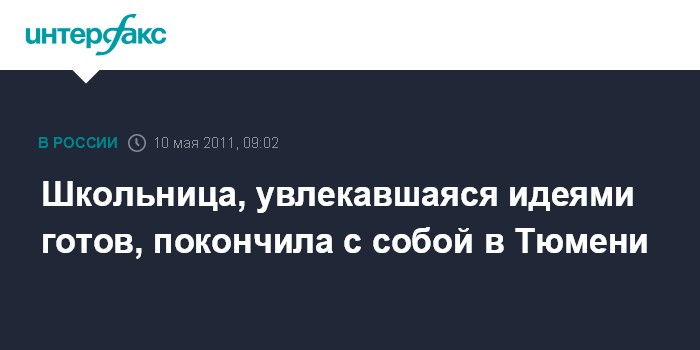 Школьница, увлекавшаяся идеями готов, покончила с собой в Тюмени