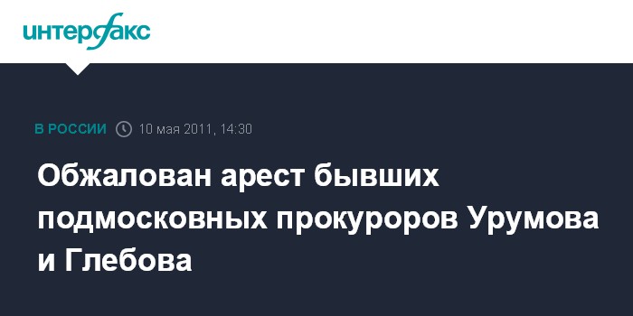 Москва. 10 мая. INTERFAX.RU - Адвокаты бывшего начальника управления Мособлпрокуратуры Дмитрия Урумова и бывшего прокурора Ногинска Владимира Глебова обжаловали решение Басманного суда об их аресте.
