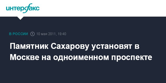 Москва. 10 мая. INTERFAX.RU - Комиссия при Мосгордуме по монументальному искусству на своем заседании во вторник утвердила предложение об установке памятника лауреату Нобелевской премии мира, академику Андрею Сахарову в центре Москвы на пересечении Проспекта Сахарова с Садовым кольцом.
