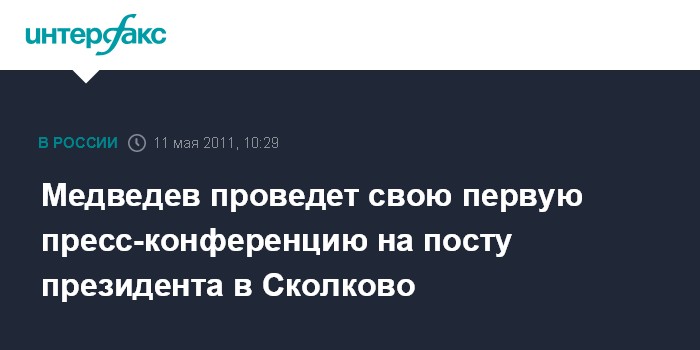 Москва. 11 мая. INTERFAX.RU - Президент РФ Дмитрий Медведев проведет пресс-конференцию 18 мая в 13:00 в здании Московской школы управления "Сколково".