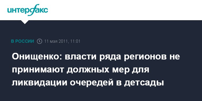 Москва. 11 мая. INTERFAX.RU - Глава Роспотребнадзора Геннадий Онищенко недоволен тем, как в некоторых российских регионах власти решают проблему очередей в детские сады.