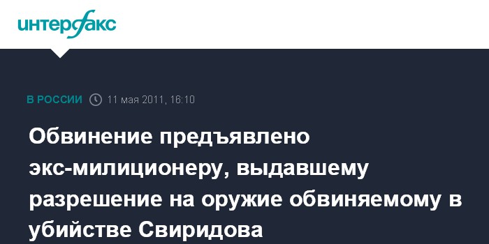 Обвинение предъявлено экс-милиционеру, выдавшему разрешение на оружие обвиняемому в убийстве Свиридова