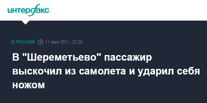 В "Шереметьево" пассажир выскочил из самолета и ударил себя ножом