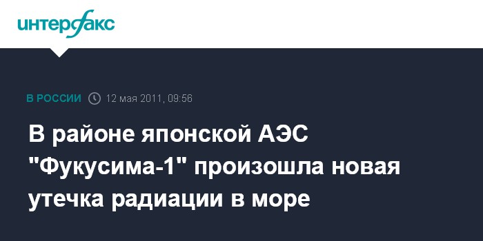 Токио. 12 мая. INTERFAX.RU - Инженеры энергетической компании TEPCO обнаружили новую утечку высокорадиоактивных веществ в море в районе АЭС "Фукусима-1" в Японии, сообщает в четверг японская телерадиокомпания NHK.