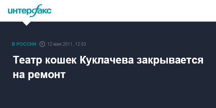 Москва. 12 мая. INTERFAX.RU - Государственное учреждение культуры "Театр кошек Куклачева" на западе столицы дает в мае и июне 2011 года последние представления, а затем закрывается на капитальный ремонт, сообщил в четверг "Интерфаксу" источник в мэрии, знакомый с ситуацией.