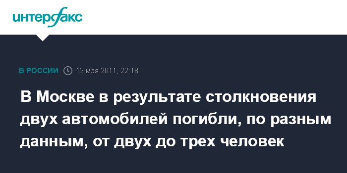 В Москве в результате столкновения двух автомобилей погибли, по разным данным, от двух до трех человек