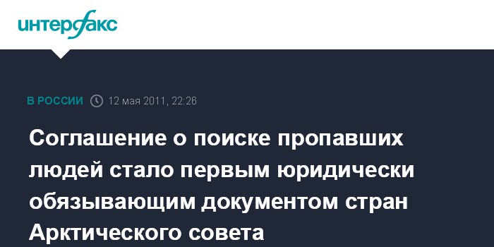 Соглашение о поиске пропавших людей стало первым юридически обязывающим документом стран Арктического совета