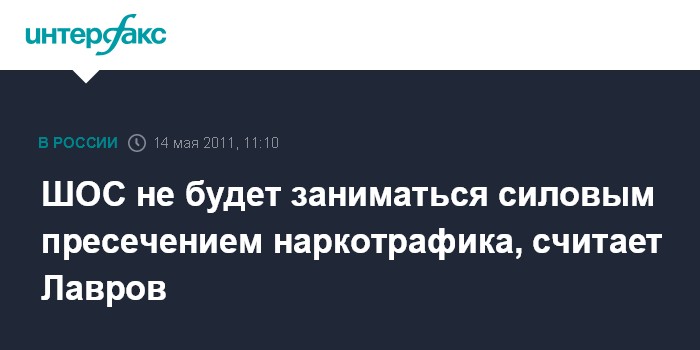 Алма-Ата.14 мая. INTERFAX.RU - Страны ШОС не намерены проводить операции с участием вооруженных сил для борьбы с наркотрафиком, в частности, из Афганистана. "Я не думаю, что ШОС будет заниматься чем-то подобным", - сказал в субботу журналистам глава МИД России Сергей Лавров. Глава МИД России также призвал страны Запада более активно бороться с наркотиками в Афганистане.