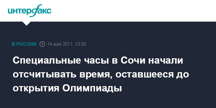 Сочи. 14 мая. INTERFAX.RU - В Центральном районе города Сочи в сквере у Морского вокзала в субботу торжественно открыты часы, которые будут отсчитывать время до начала игр 2014 года. Эти часы обратного счета времени открыты за тысячу дней до начала Олимпийских игр.