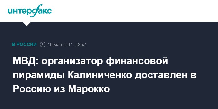 МВД: организатор финансовой пирамиды Калиниченко доставлен в Россию из Марокко