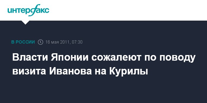Токио. 16 мая. INTERFAX.RU - Правительство Японии выражает озабоченность и сожаление по поводу визита вице-премьера Сергея Иванова на Курилы, сообщают японские СМИ со ссылкой на генсекретаря правительства Юкио Эдано.