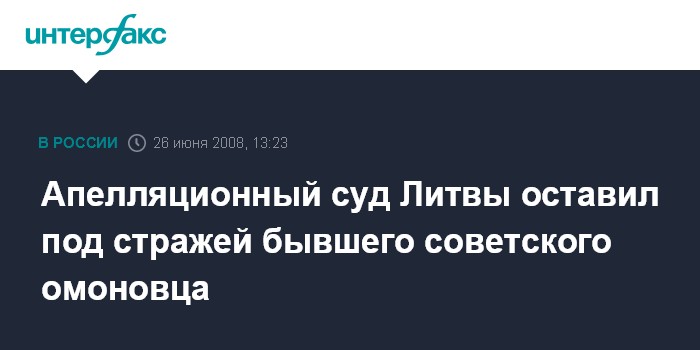 Москва. 26 июня. INTERFAX.RU - Литовский апелляционный суд (ЛАС) отклонил жалобу бывшего бойца Рижского отряда ОМОН МВД СССР Константина Михайлова, оставив в силе решение Вильнюсского окружного суда о продлении срока его содержания под арестом на два месяца.