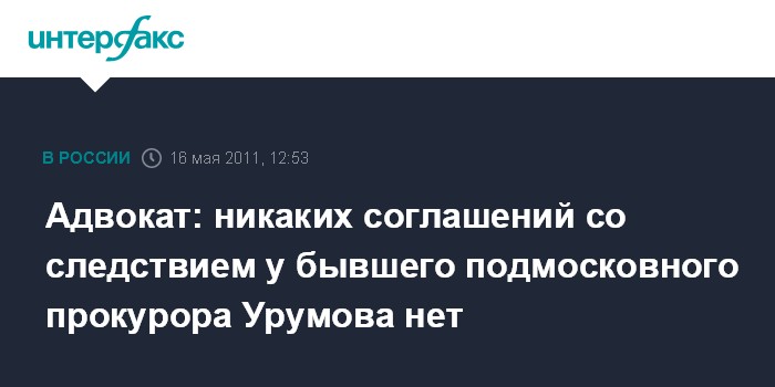 Москва. 16 мая. INTERFAX.RU - Бывший начальник управления Мособлпрокуратуры Дмитрий Урумов, обвиняемый в получении взятки по делу об организации незаконных казино в Подмосковье, не заключал сделки со следствием, сообщил "Интерфаксу" его адвокат Юрий Михайлов.