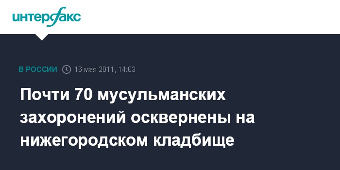 Почти 70 мусульманских захоронений осквернены на нижегородском кладбище