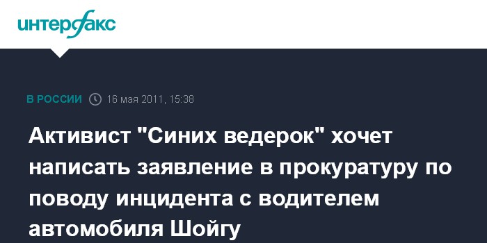 Активист "Синих ведерок" хочет написать заявление в прокуратуру по поводу инцидента с водителем автомобиля Шойгу