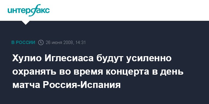 Москва. 26 июня. INTERFAX.RU - В четверг, во время екатеринбуржского концерта Хулио Иглесиаса, испанского певца будут охранять не только от поклонников, но и от футбольных фанатов.