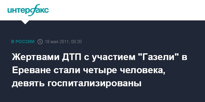 Жертвами ДТП с участием "Газели" в Ереване стали четыре человека, девять госпитализированы