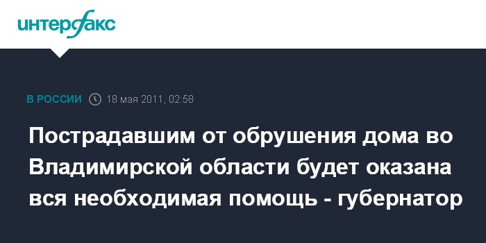 Владимир. 18 мая. ИНТЕРФАКС-ЦЕНТР - Власти Владимирской области оказывают всю необходимую помощь жильцам дома, обрушившегося во вторник в городе Струнино, сообщил "Интерфаксу" губернатор региона Николай Виноградов.