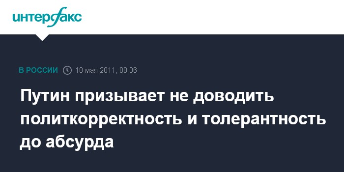 Путин призывает не доводить политкорректность и толерантность до абсурда