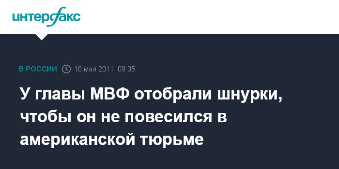 У главы МВФ отобрали шнурки, чтобы он не повесился в американской тюрьме