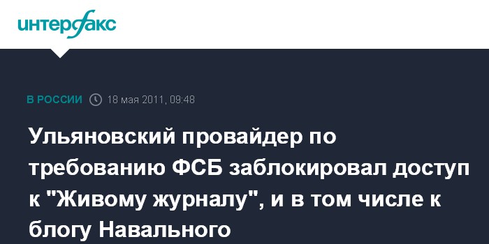 Ульяновский провайдер по требованию ФСБ заблокировал доступ к "Живому журналу", и в том числе к блогу Навального