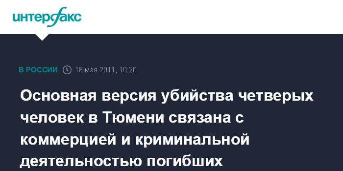 Тюмень. 18 мая. INTERFAX.RU - Управление СКР по Тюменской области возбудило уголовное дело по факту убийства четырех человек, которое было совершено в минувший вторник.