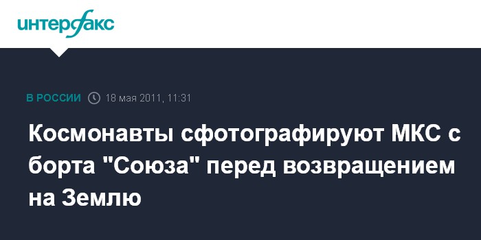 Москва. 18 мая. INTERFX.RU - Экипаж пилотируемого корабля "Союз ТМА-20", возвращающийся на Землю 24 мая, после расстыковки от Международной космической станции (МКС) выполнит ее фотографирование и видеосъемку, сообщает в среду подмосковный Центр управления полетами (ЦУП).