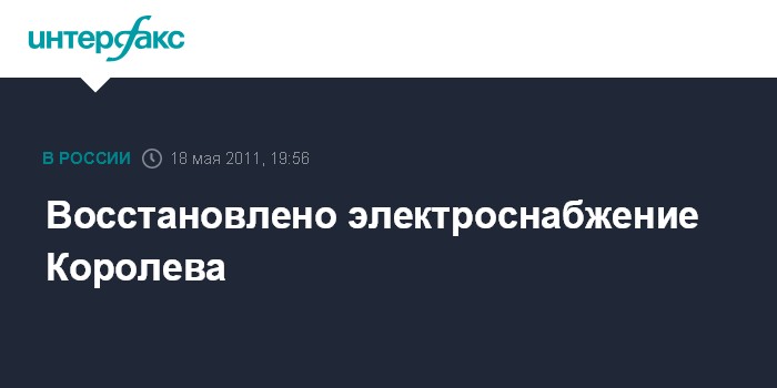Он добавил, что электроснабжение Королева восстановлено в полном объеме.