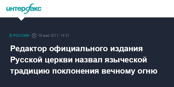Москва. 19 мая. INTERFAX.RU - Ответственный редактор "Журнала Московской патриархии", официального органа Русской православной церкви, Сергей Чапнин назвал странным обычай поклонения вечному огню и сказал, что в основе этого лежит язычество.