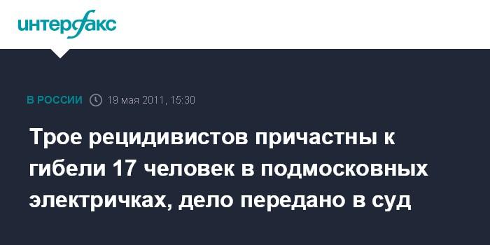 Трое рецидивистов причастны к гибели 17 человек в подмосковных электричках, дело передано в суд