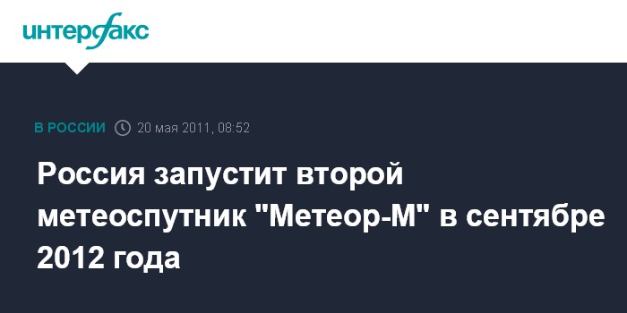 Москва. 20 мая. INTERFAX.RU - Запуск российского метеорологического спутника "Метеор-М" номер два планируется осенью следующего года, сообщает Роскосмос.