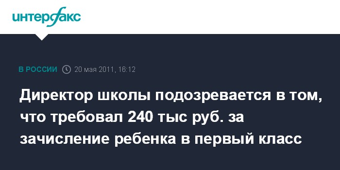 Директор школы подозревается в том, что требовал 240 тыс руб. за зачисление ребенка в первый класс