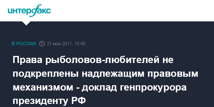Права рыболовов-любителей не подкреплены надлежащим правовым механизмом - доклад генпрокурора президенту РФ