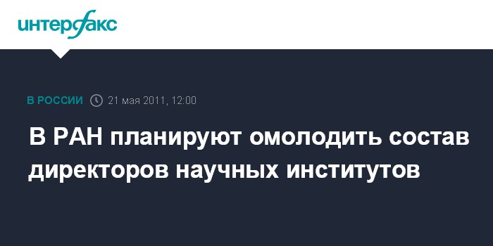 Москва. 21 мая. INTERFAX.RU - Российская академия наук планирует сформировать кадровый резерв из молодых ученых для замещения должностей руководителей институтов, заявил журналистам главный ученый секретарь РАН Валерий Костюк. Он пояснил, что сейчас средний возраст директоров научных институтов очень высок - 22% из них уже достигли 70 лет.