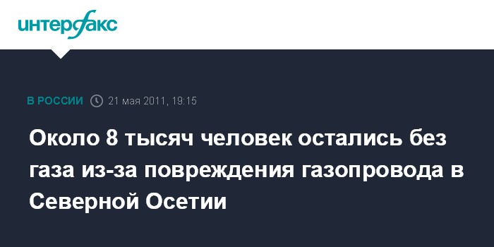 Около 8 тысяч человек остались без газа из-за повреждения газопровода в Северной Осетии