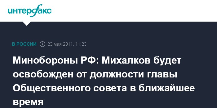 Москва. 23 мая. INTERFAX.RU - Просьба кинорежиссера Никиты Михалкова об освобождении его от должности председателя Общественного совета при Минобороны и выходе из его состава будет удовлетворена на ближайшем заседании Совета, сообщил "Интерфаксу" официальный представитель российского военного ведомства полковник Игорь Конашенков.