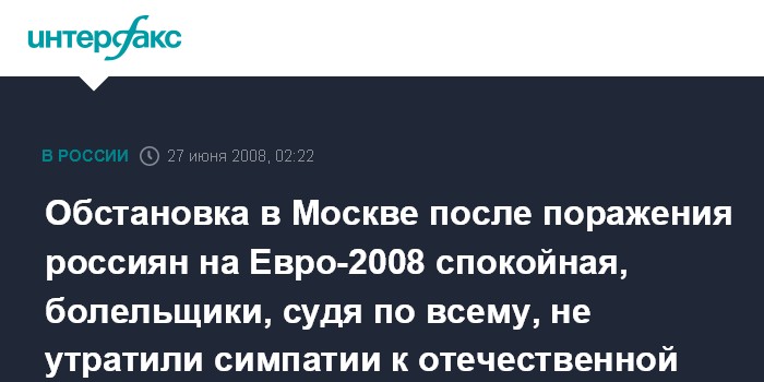 Обстановка в Москве после поражения россиян на Евро-2008 спокойная, болельщики, судя по всему, не утратили симпатии к отечественной сборной
