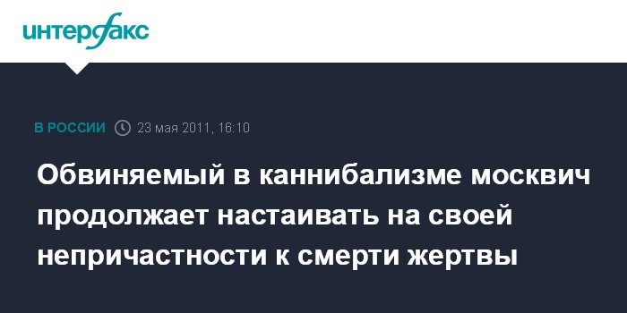 Он пояснил, что его подзащитный не отрицает своей вины в каннибализме, но заявляет о невиновности в убийстве.