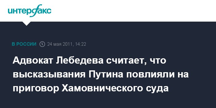 Адвокат Лебедева считает, что высказывания Путина повлияли на приговор Хамовнического суда