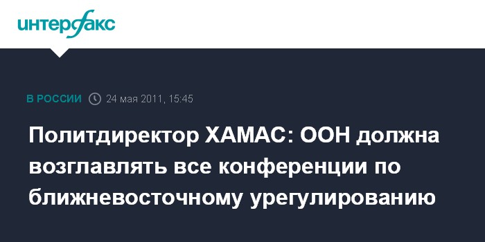 Москва. 24 мая. INTERFAX.RU - Все международные конференции по ближневосточному урегулированию должны проходить под эгидой ООН, заявил заместитель председателя политбюро палестинского движения ХАМАС Муса Абу-Марзук.