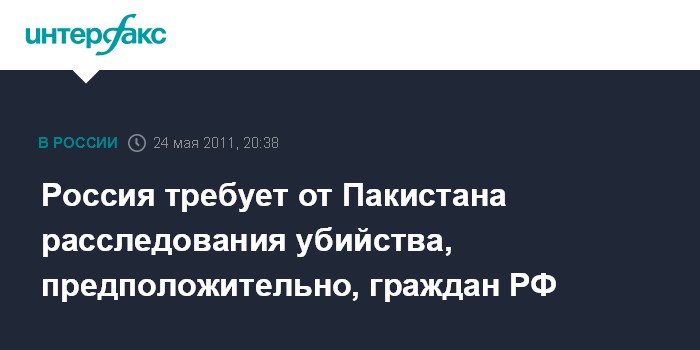 Москва. 24 мая. INTERFAX.RU - Москва потребовала от Исламабада информации о ходе расследования гибели пяти человек - предположительно россиян - на прошлой неделе в пакистанской провинции Белуджистан.